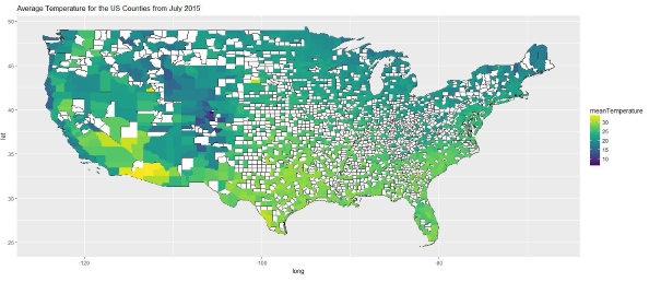 ggtitle("Average Temperature for the US Counties from July 2015") +