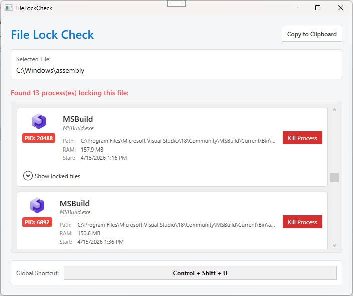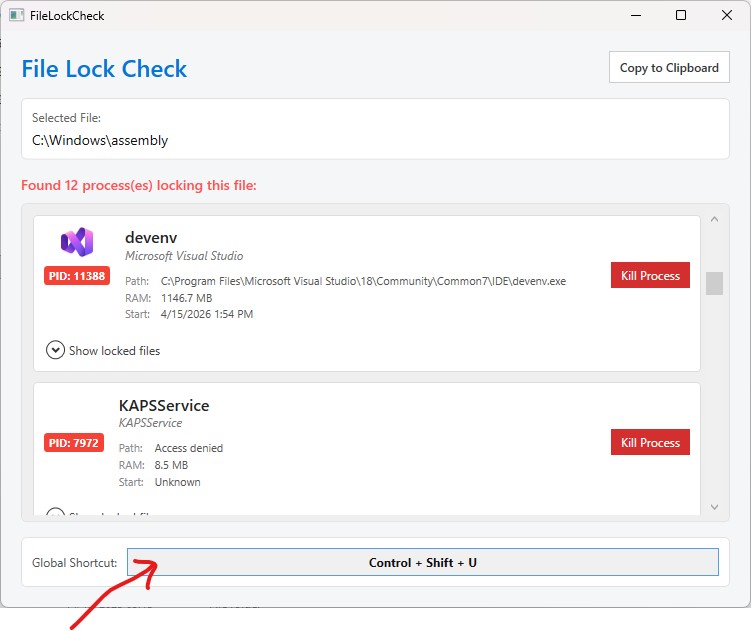 FileLockCheck is an application to show, which processes are locking a folder or file. This
